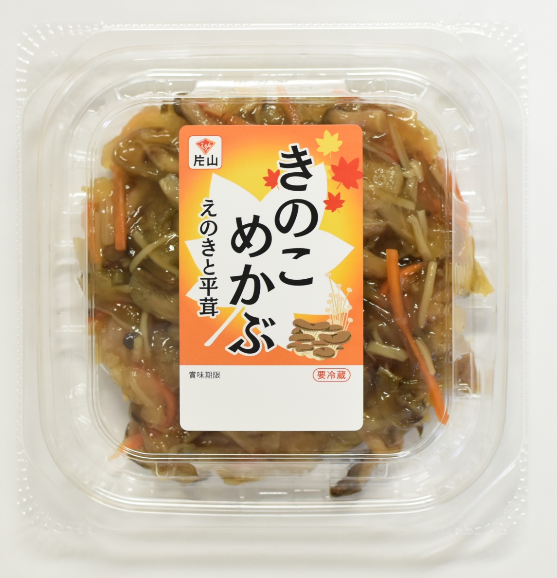 めかぶにえのき、ひらたけの2種類のきのこを加えた商品です。