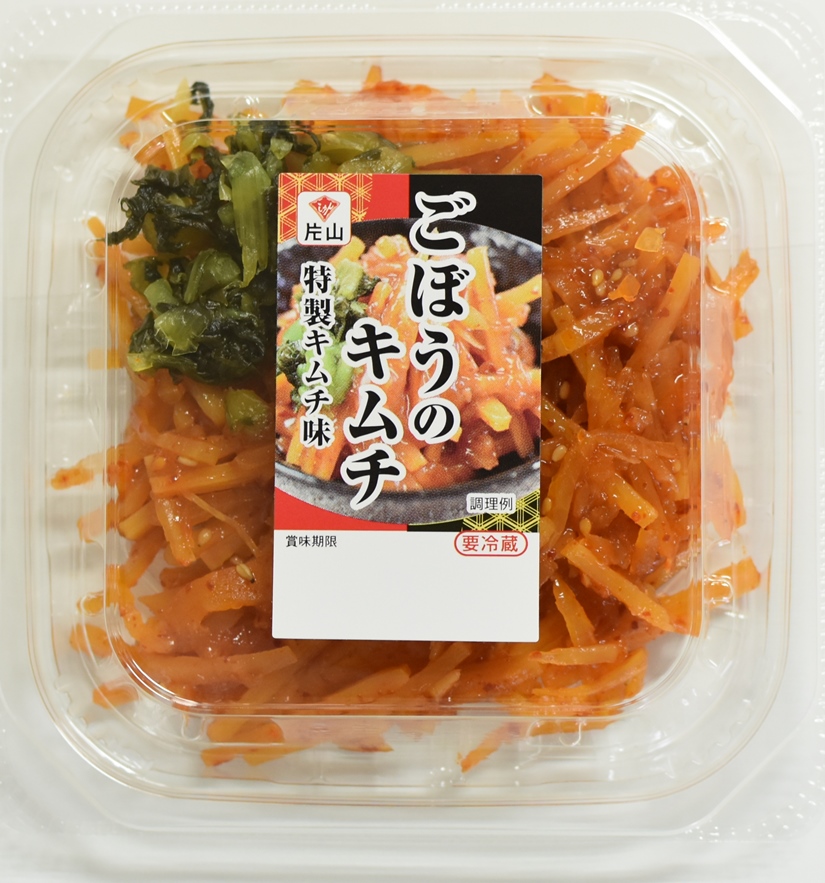 千切にした大根、ごぼうをあっさりしたしょうゆ味に味付けし、特製のキムチダレと合わせました。